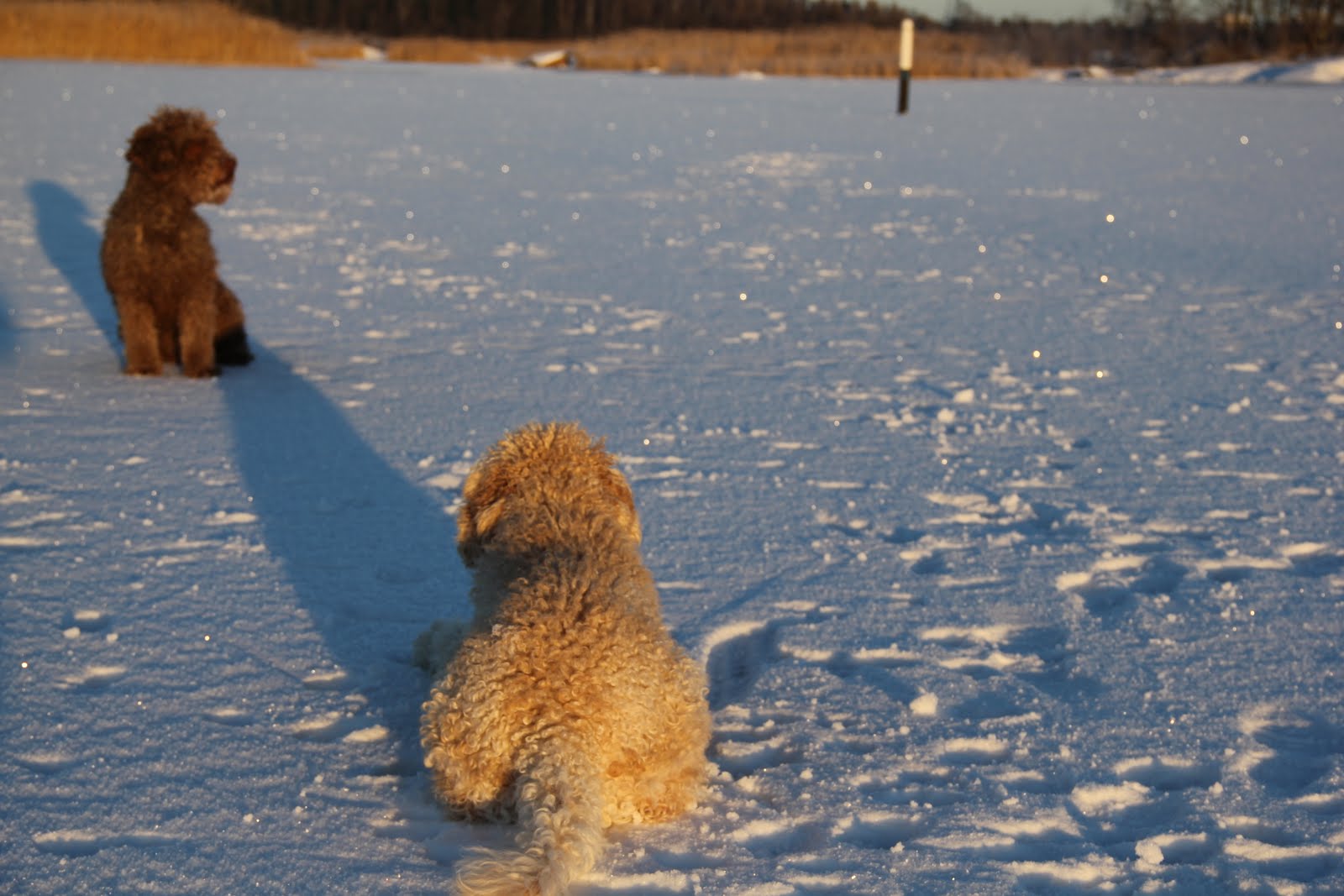 Mutta ei niistä tavallisista tapahtumista vaan jaksa kirjoitella. Lunta on tullut niin paljon, että koirilla on metsälenkillä täysi työ päästä eteenpäin, mahtavaa lihaskuntoliikuntaa! :) Odottelen sitä päivää innolla, kun päästään (lue: ehditään) jäälle lenkkeilemään. Pakkasten takia on välillä lenkkeilykin jäänyt vähemmälle, mistä kärsin suunnattomia omantunnontuskia. Koirien tassut vaan jäätyy ikävästi. Olenkin vakavissani harkinnut tossujen ostamista, varsinkin sille beigelle draamakuninkaalle. Mutta kun sitäkään ei vaan saa aikaiseksi.